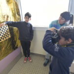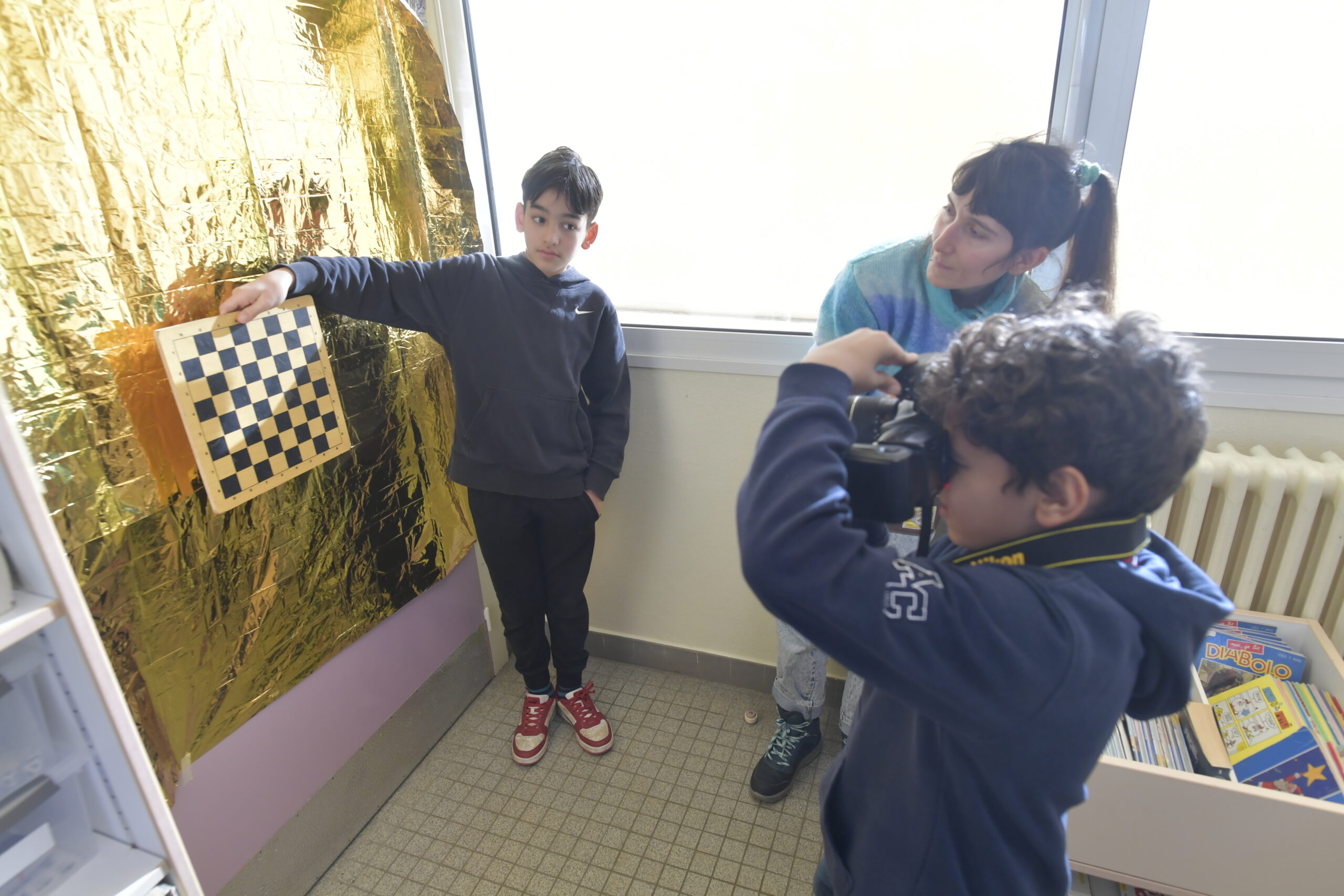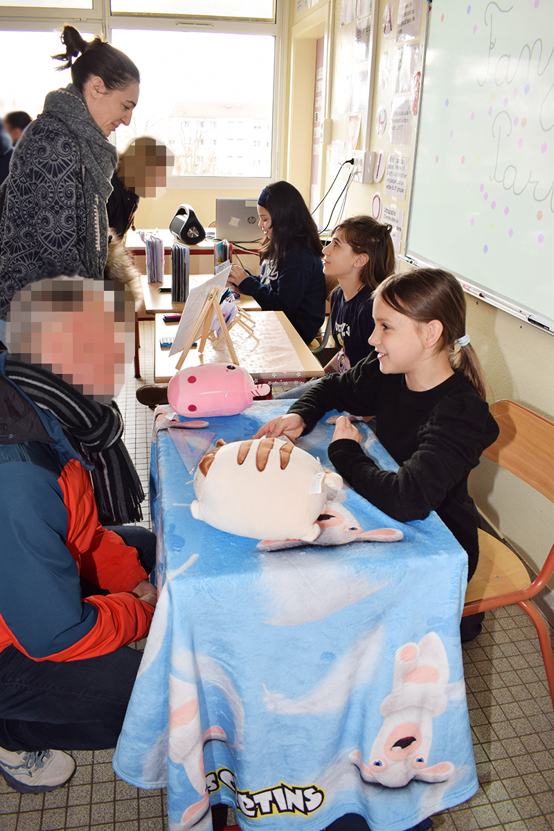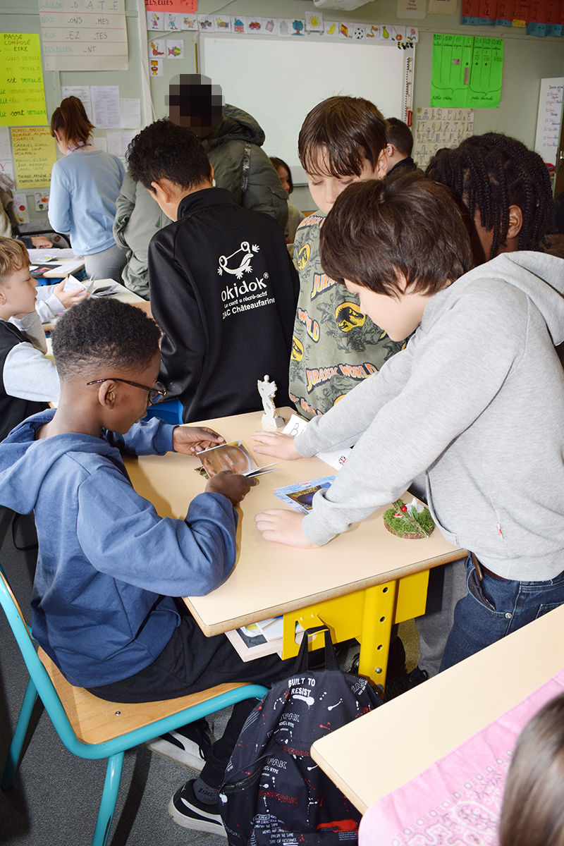 La classe était divisée en deux groupes : un groupe exposant et l’autre visiteur, et vice versa.