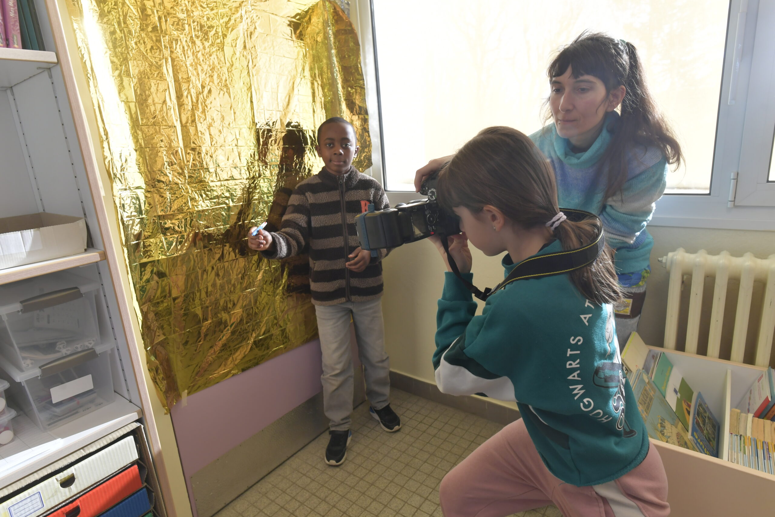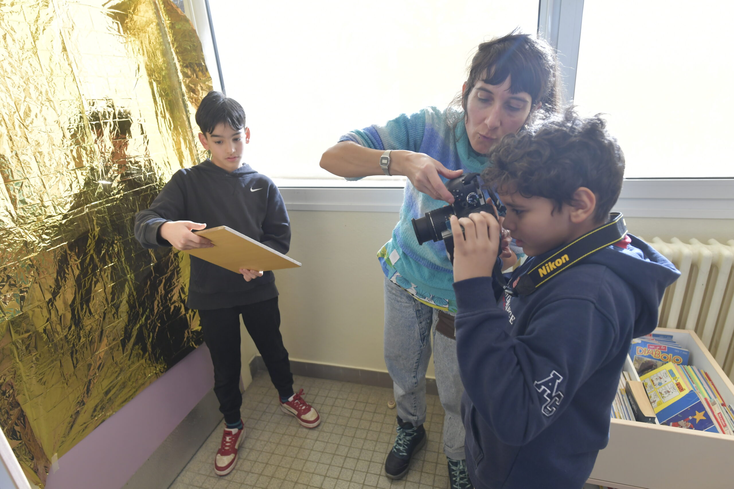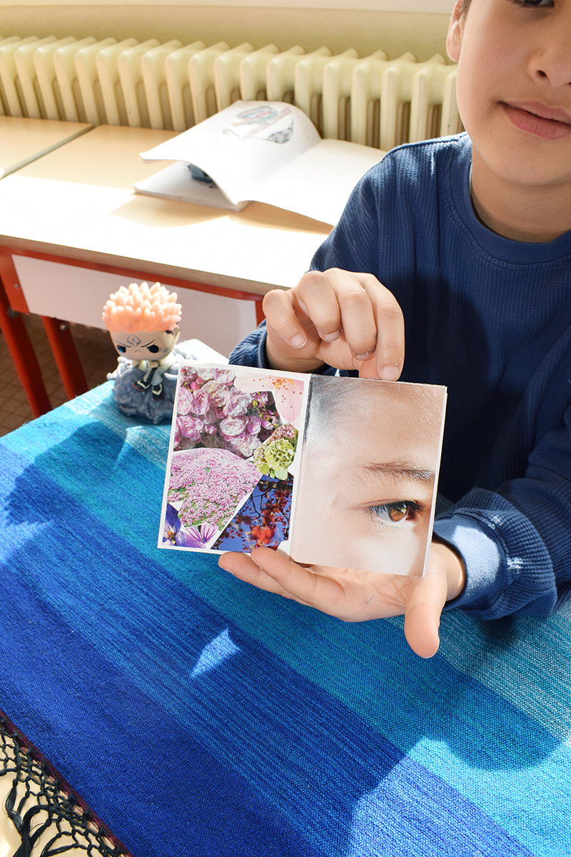 Le parcours « Fanzine-Poster : ça, c’est moi ! » proposé par l’artiste photographe Ama split invite les élèves à partir à la recherche d’eux-mêmes en réalisant un fanzine poster sur le thème de l’autoportrait : les enfants devaient fabriquer un fanzine-poster en utilisant diverses pratiques comme la photographie numérique en studio, le collage, le dessin et le graphisme.