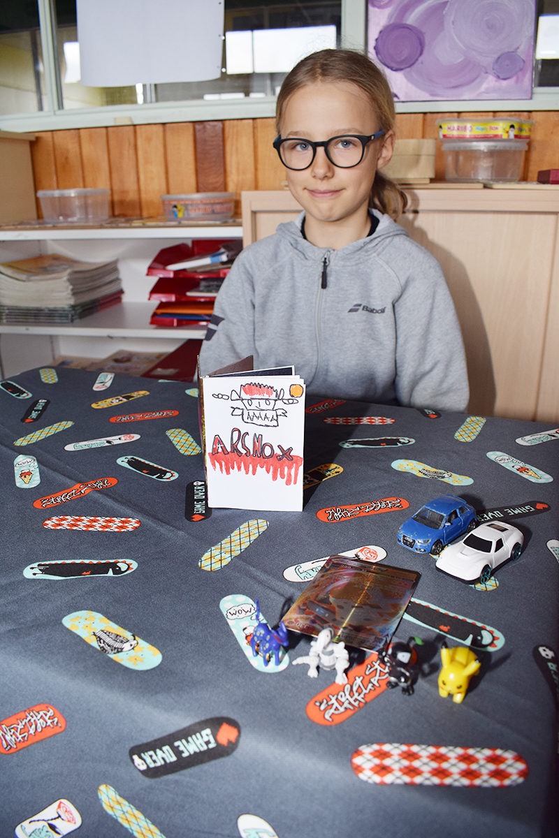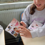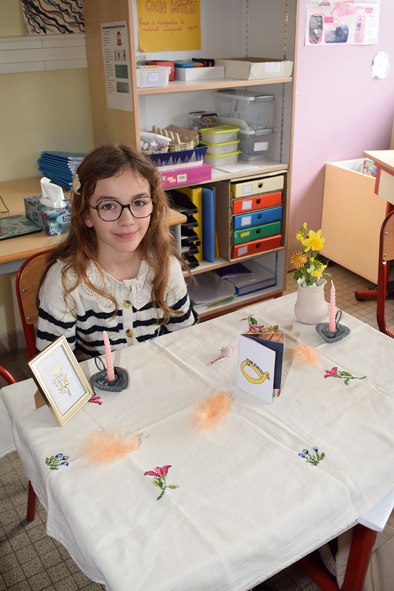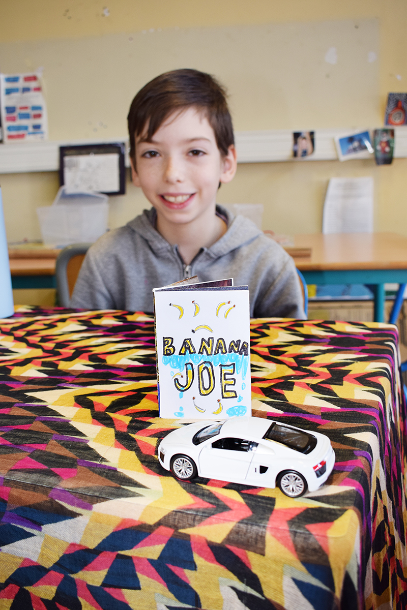 Le parcours s’est achevé avec un mini salon du fanzine organisé dans la classe. Les tables ont été installées comme des stands et à tour de rôle, les enfants ont présenté leurs projets. Ils ont expliqué leurs collages et leurs choix musicaux (tous les morceaux ont été diffusés en fond sonore).