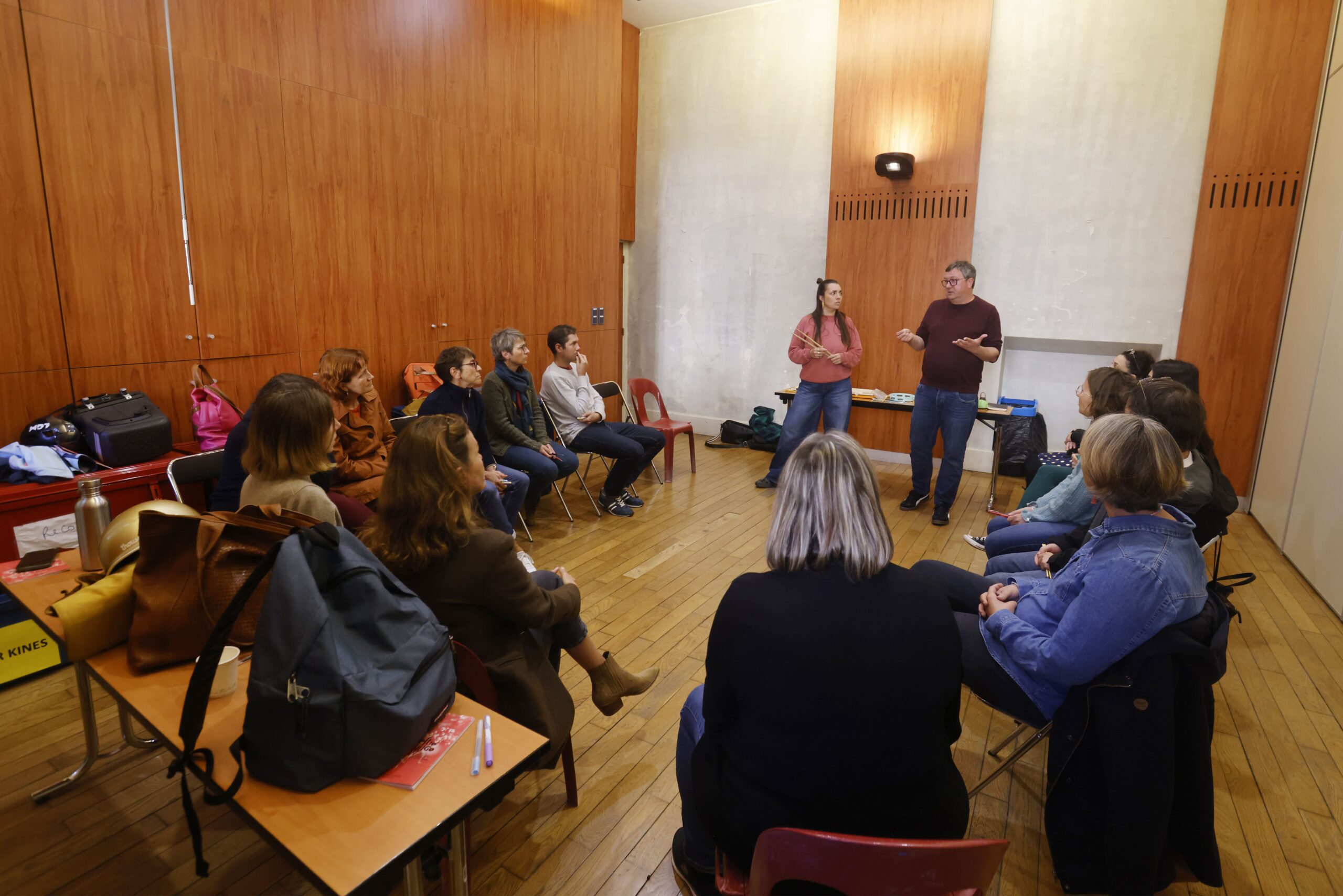 À chaque rentrée, en amont des étapes avec les élèves, une première rencontre est organisée entre les acteurs culturels porteurs de parcours et les enseignants inscrits. Au programme de la matinée : des temps de pratique autour d’une thématique transversale commune à plusieurs parcours, co-construits et proposés par les acteurs culturels, et destinés aux enseignants qui suivront un parcours Élémentaire ou Maternelle, sans distinction. L’occasion pour ces derniers de prendre un peu de recul par rapport au parcours suivi durant l’année et d’acquérir des outils pour aborder le travail en classe (pour les « inter-étapes » notamment).