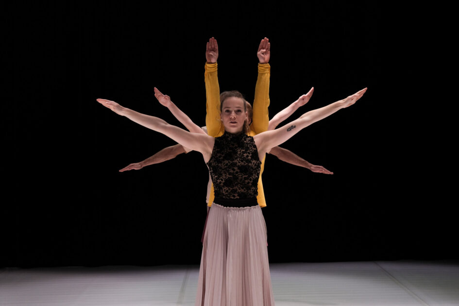 Affiner la structure chorégraphique créée par les élèves. Expérimenter la présence scénique et la projection de l’intention. Répétition et ajustements.